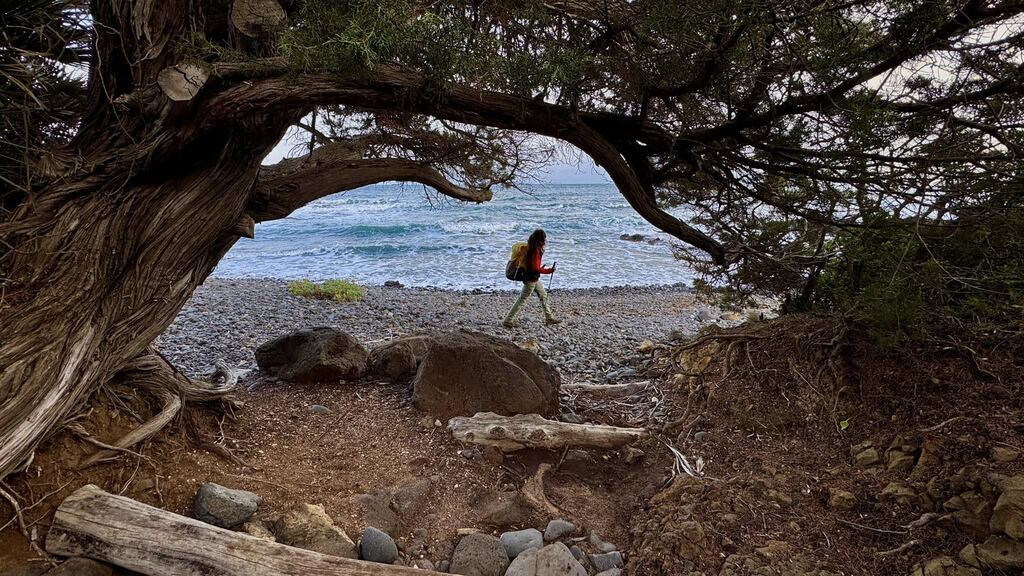 Schodzimy na plażę i przez chwilę podziwiamy potężne fale, które rozbijają się o brzeg. Szlak wiedzie pod klifem. Nie przejdziemy tam susi, więc szukamy przejścia górą.